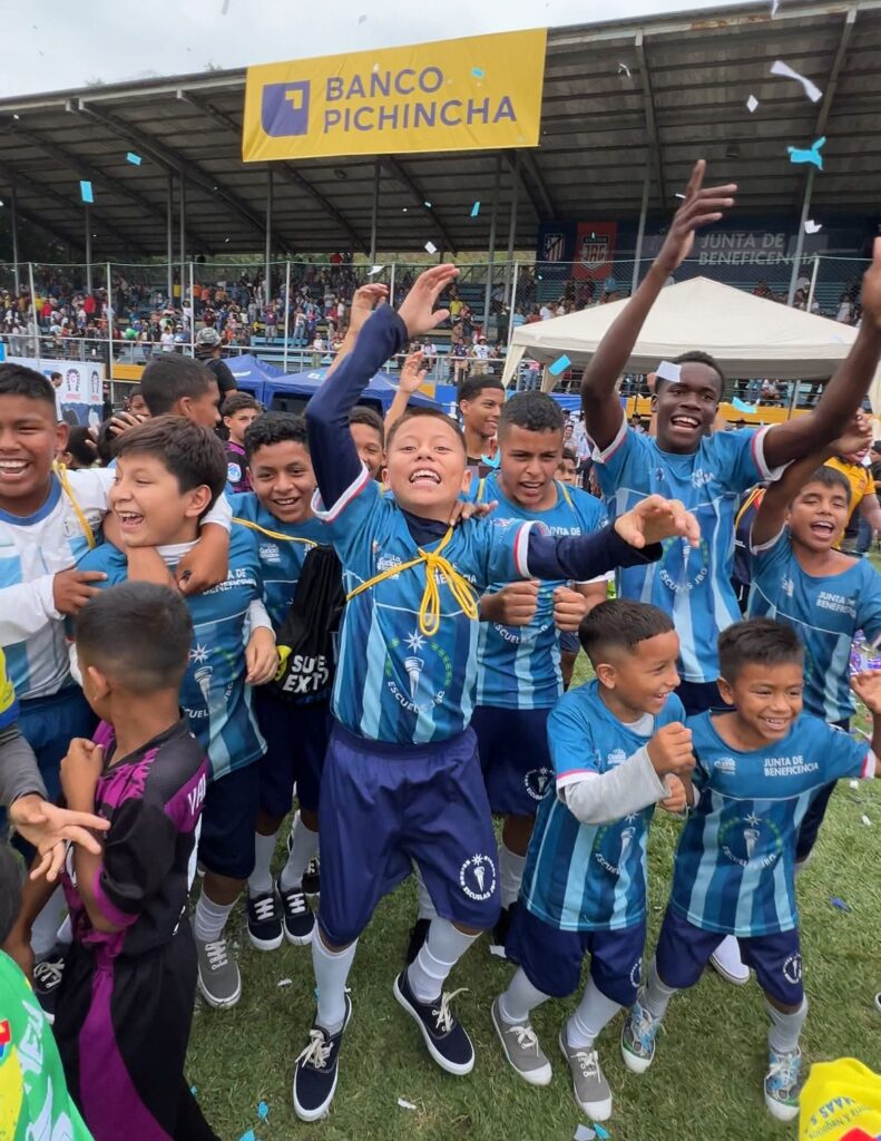 Ya inauguramos en Cisne 2 y en Mucho Lote el primer miniestadio y la cancha para el campeonato y la liga de fútbol de la Junta de Beneficencia de Guayaquil con el Atlético de Madrid y el Municipio, y vamos a seguir interviniendo para desarrollar en el deporte y formar personas.